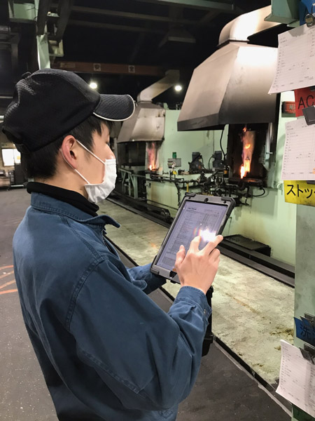たとえば熱処理加工の場合、適正な範囲内で処理されているかどうかを観察することで、不良率を下げることができる。従来は、処理内容を鉛筆で記録し、事後にデータ入力して分析していた。それが作業中に入力できるようになると、リアルタイムで状況を分析し、不良率減少の調整ができるようになる。デジタル化によって、継続的、安定的な加工体制を組み立てやすくなるのだ。