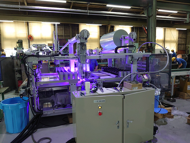 そして令和2年度、事業計画「コーターによるUV塗工の新技術開発」で再びものづくり補助金を申請した。こちらは建材表面にUV(紫外線)を照射することによって硬いコーティング塗膜を形成するUV塗工技術の新技術。庄内機械が独自に開発したUV塗工機によって従来は何度も塗り重ねながら仕上げなければならなかった鏡面加工を、一度の工程で済ませることができるようになった。亀田社長によると、高級システムキッチンなどの用途を想定しており、国内市場だけでなく、中国に販路を持つ建材メーカーや住宅メーカーへの営業活動を進めている。