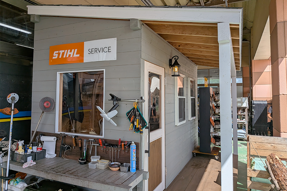 有限会社村田金物店の本社がある下関市豊田町は、山々に囲まれた自然豊かな中山間地である。水稲や野菜などの農業も盛んであり、林業や農業への従事者が多い。このような地理的背景を踏まえ、同社では従来から国産メーカーの電動工具を取り扱ってきたが、2018(平成30)年から、世界的ブランドであるドイツのSTIHL社製品の取り扱いを開始した。STIHL社製品を取り扱うには、当然のことながら様々な適格要件が存在し、とりわけ消耗品交換や修理等のアフターサービスまでを一貫して行うことがSTIHL社の販売ポリシーである。